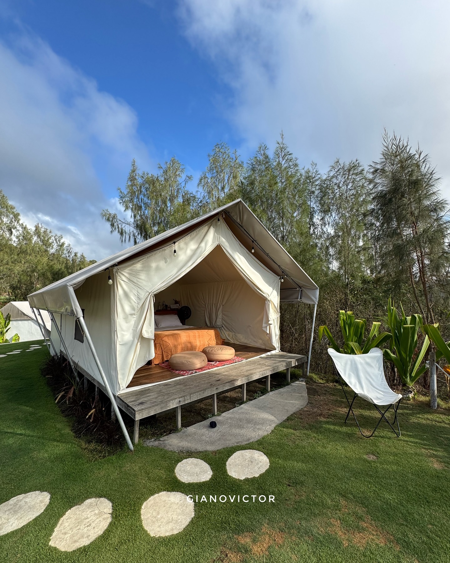 Reaching the site requires a bit of adventure; your vehicle can’t go all the way in. Instead, a jeep will take you from the parking area to the glamping grounds.